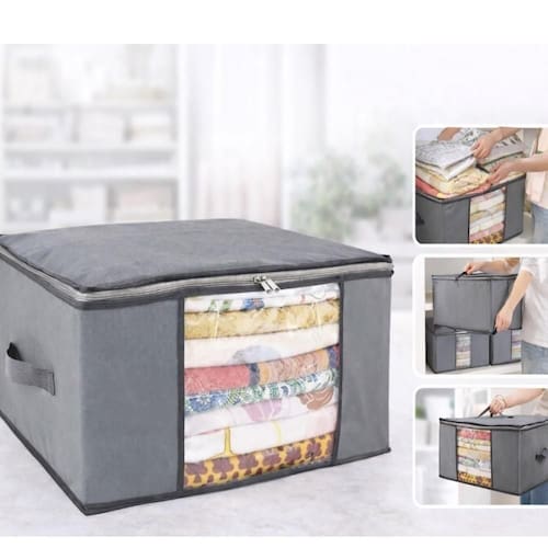A Caixa Organizadora com Zíper é ideal para armazenar roupas de cama, cobertores, edredons, toalhas, travesseiros, roupas sazonais, brinquedos e diversos outros itens do dia a dia.