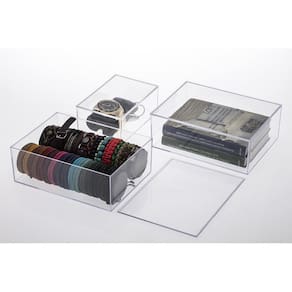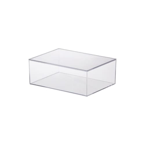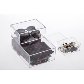 Espaço organizado com um linda caixa transparente, com tampa, que pode acomodar diversos itens é o ideal. Esse modelo pode ser utilizado para acomodar: