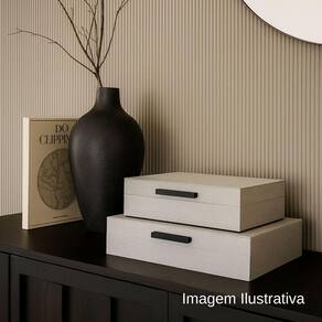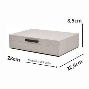 Dimensões Altura: 8,5cm Largura:28cm Profundidade: 22,5cm Material: MDF e Linho