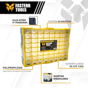 Mantenha seu espaço sempre organizado com o Organizador Plástico Fasterr, que conta com 64 gavetas projetadas para armazenar uma grande variedade de itens. Perfeito para acondicionar peças e acessórios de pequeno porte, como material de pesca, parafusos, pregos, porcas, itens de escritórios, itens de bricolage e até mesmo medicamentos.