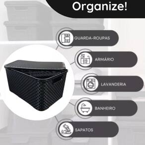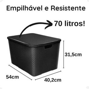 Caixa organizadora rattan 70l preto Caixa organizadora rattan 70l na cor preta, perfeita para manter seus ambientes sempre arrumados e charmosos. Com capacidade de 70 litros, peso de 1,646 kg e medidas de 54cm de comprimento, 31,5cm de altura e 40,2cm de largura, ela é ideal para guardar roupas, brinquedos, documentos e muito mais.