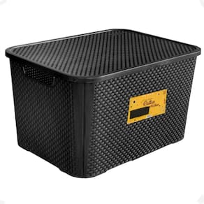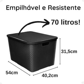 Caixa organizadora rattan 70l preto Caixa organizadora rattan 70l na cor preta, perfeita para manter seus ambientes sempre arrumados e charmosos. Com capacidade de 70 litros, peso de 1,646 kg e medidas de 54cm de comprimento, 31,5cm de altura e 40,2cm de largura, ela é ideal para guardar roupas, brinquedos, documentos e muito mais.