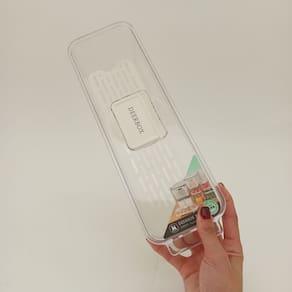Altura: 9 cm Largura: 30,5 cm Profundidade: 9,5 cm Peso: 0,44 Kg Material: Acrílico Cor: Transparente