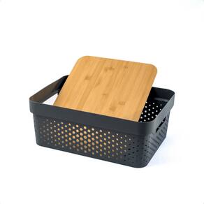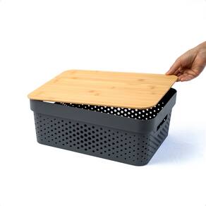 Caixa Organizadora Poá com Tampa de Bambu Oikos Multiuso Cinza