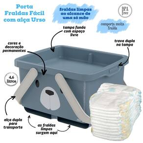 Mantenha as fraldas do seu bebê sempre organizadas e prontas para o uso com a prática e estilosa Caixa para Fraldas Infantil. Com capacidade para até 20 fraldas tamanho GG*, essa caixa é a solução perfeita para facilitar o dia a dia dos pais e cuidadores. Suas alças laterais tornam o transporte fácil e seguro, permitindo que você a leve para qualquer ambiente da casa com total praticidade. Um dos grandes diferenciais desta caixa são as aberturas inferiores, que permitem retirar as fraldas sem a necessidade de abrir a tampa, garantindo mais agilidade na hora da troca. Além disso, a decoração feita com tecnologia intra imagem assegura que o design permaneça vibrante e duradouro, mesmo com o uso frequente. Funcional e charmosa, essa caixa é o item essencial que alia organização, praticidade e estilo no cuidado com seu bebê. * a quantidade pode variar de acordo com a marca e modelo da fralda. Material: polipropileno Capacidade: 4,6 litros Dimensões: 22,0cm x 25,8cm x 15,3cm (CxLxA)