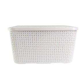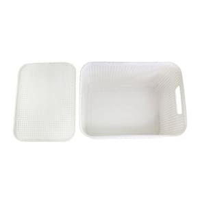 Caixa Organizadora Rattan Cesto Com Tampa 15 Litros Branco Caixa Organizadora 15 litros Empilhável Rattan Esse caixa é perfeita para ajudar na organização da sua casa ou escritório de uma forma simples e elegante. Ótima para guardar acessórios, roupas de cama, livros, maquiagens, documentos entre outros objetos. Feita em plástico resistente, toda trabalhada com textura de tramas.Pode empilhar mais de uma caixa, além de otimizar o espaço, deixa os utensílios mais organizados. ESPECIFICAÇÕES:Material: PlásticoDimensões: 18cm altura x 35cm comprimento x 26cm larguraCapacidade: 15 litrosCor: Branca CONTÉM:01 CAIXA ORGANIZADORA 15 LITROS RATTAN BRANCA