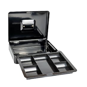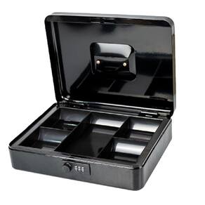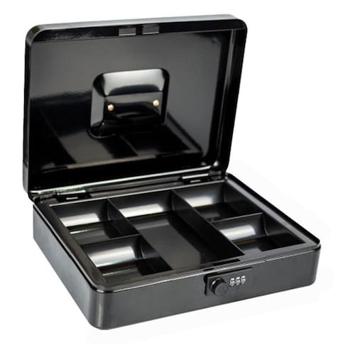 Disponível na cor PRETA com medida única Medida da caixa para dinheiro 90x300x240mm. Possui alça de transporte embutida, fechadura de combinação, bandeja de dinheiro removível.