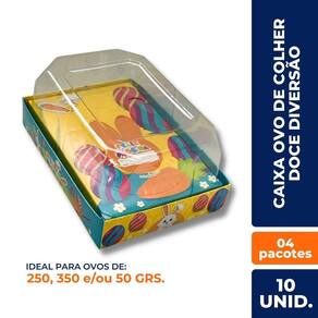 A caixa para ovo de colher é ideal para o seu ovo de páscoa gourmet. Essa embalagem é 3 x 1, pois possui berço adaptável aos tamanhos de 250g, 350g e 500g. A caixa e o berço são unidos e vem com a tampa pronta, proporcionando uma montagem fácil e rápida, em média demora 10 segundos para se montar uma caixa completa.