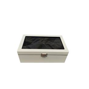 - Produto fabricado em madeira maciça de qualidade - Não empena, não trinca, não racha - Revestimento interno aveludado, inclusive as bandejas. - Acompanham 3 bandejas para relógios. - Fecho giratório de pressão em metal suporta cadeado - Tampa de vidro 2 milímetros. - Medidas aproximada da caixa: 11 cm de altura, 30 cm de comprimento, 17 cm de largura.