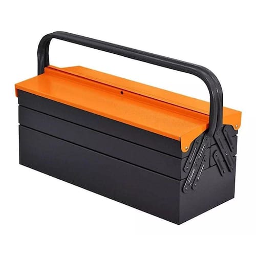 A Caixa de ferramentas sanfonada totalmente confeccionada em aço, é perfeita para transportar suas ferramentas e mantê-las sempre organizadas. CARACTERÍSTICAS- Resistente: Produzida em aço;- Durável: Tratamento antiferrugem, pintura eletrostática a pó;- Excelente custo-benefício;- Segurança: Furação na tampa para cadeado;- Abertura total das gavetas; DADOS TÉCNICOS:: Cor: Laranja e cinza:: Espessura da chapa da coluna: 0,46mm:: Gavetas: 05:: Acabamento: Antiferruginoso:: Peso kg : 25kg:: Dimensões C x L x A cm : 50 x 20 x 21