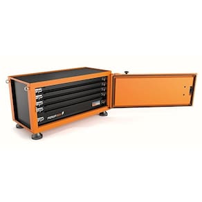 Projetada para facilitar a manutenção em campo, a caixa Pickup Box da Tramontina PRO encaixa perfeitamente na parte traseira de caminhonetes, o que proporciona mais flexibilidade, agilidade e redução de custos na manutenção de máquinas e equipamentos. O mecânico bota o pé na estrada e com as ferramentas em mãos, evita longos deslocamentos das fazendas até concessionárias ou oficinas de reparação. A caixa possui: 4 olhais para fixação da caixa na camionete, pés com sistema de amortecimento anti vibração (vibra stop), fechadura reforçada com chave, porta frontal com borracha de vedação que impede a entrada de poeira e água e dispositivo de trava da porta para locais com vento. Possui 5 gavetas com trancas individuais. Conta com mais de 1,8 metros quadrados de área para armazenamento de ferramentas, peças e acessórios para manutenção. A caixa pode ser personalizada quanto a cor e principalmente quanto a composição, que pode ser colocada em berços de EVA de 40 mm, deixando tudo no lugar durante o deslocamento.