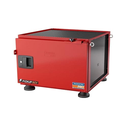 Projetada para facilitar a manutenção em campo, a caixa Pickup Box da Tramontina PRO encaixa perfeitamente na parte traseira de caminhonetes, o que proporciona mais flexibilidade, agilidade e redução de custos na manutenção de máquinas e equipamentos. O mecânico bota o pé na estrada e com as ferramentas em mãos, evita longos deslocamentos das fazendas até concessionárias ou oficinas de reparação. A caixa possui: 4 olhais para fixação da caixa na camionete, pés com sistema de amortecimento antivibração (vibra stop), fechadura reforçada com chave, porta frontal com borracha de vedação que impede a entrada de poeira e água e dispositivo de trava da porta para locais com vento. Possui 5 gavetas com trancas individuais e a caixa pode ser personalizada quanto a cor e principalmente quanto a composição, que pode ser colocada em berços de EVA de 40 mm, deixando tudo no lugar durante o deslocamento.