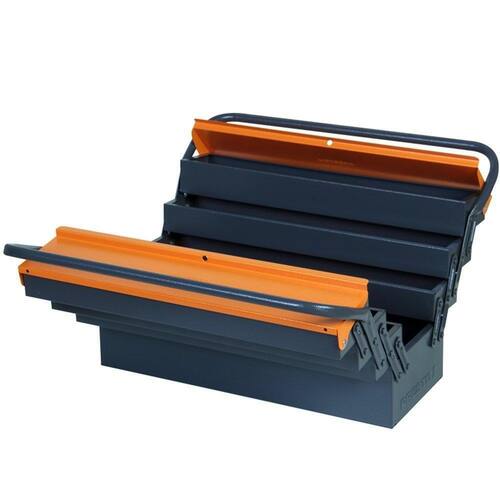 Caixa para Ferramentas Sanfonada com 7 Gavetas 50 cm COR: laranja e cinza Caixa sanfonada para ferramentas 7 gavetas é ideal para organizar e transportar ferramentas, sendo extremamente útil e fácil de locomover, busca atender às mais diversas necessidades de organização. Possui estrutura reforçada com tratamento antiferruginoso, pintura eletrostática a pó, garantindo maior qualidade e durabilidade. Conta com 7 gavetas, sendo 1 grande e 6 pequenas, dobra em todas as gavetas e local para colocar cadeado. - Especificações Técnicas: :: Largura: 200mm :: Altura: 250mm + 110mm alça :: Profundidade: 500mm :: Peso: 5,642 Kg :: Carga Máxima: 30Kg:: Material: Metal