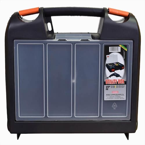 Indicado para armazenar furadeiras com compartimentos para peças e acessórios, material de pesca, parafusos, pregos, porcas, entre outros. Possui compartimentos com divisões, alça para transporte e travas.