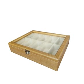 Caixa para Óculos C/10 Divisórias Cerejeira floco bege: Caixa para Óculos C/10 Divisórias Prático e luxuoso, na linha madeira maciça encontrarmos um toque vintage, objeto decorativo onde são visíveis os veios naturais da madeira. Nossos estojos irão facilitar seu dia a dia com a organização e segurança que sua coleção precisa, além de proporcionar um ambiente mais sofisticado e elegante. Produzida com madeira natural de reflorestamento. Escolhida rigorosamente, tratada com fungicidas e anticupins. Envernizada externamente com verniz poliuretano industrial. Internamente as laterais e divisórias são revestidas com nylon aveludado. E as almofadas que acompanham o produto, normalmente são também em tecido aveludado. Na linha madeira maciça é possível observar os veios naturais da madeira. As dobradiças não são aparentes e possuem um limitador. A tampa possui visor com vidro transparente. Acompanha um fecho giratório de pressão em metal, ideal para colocar cadeado. Seus relógios sempre bem protegidos e acomodados confortavelmente, com toda segurança e facilidade no manuseio.