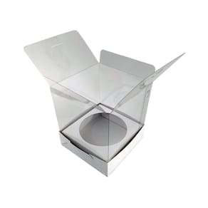 Especificações: Caixa: Transparente Medidas: 10 x 10 x 12 cm Comprimento X Largura X Altura Material da Caixa: Acetato 200 micras 0,20 Material do Berço e da Base: Papel Duplex 250g Para Panetones de Até 500g Pode suportar tamanhos maiores, verifique medidas Circunferência útil do Berço: 33cm Diâmetro útil do berço: 10,5cm Altura útil: 16cm