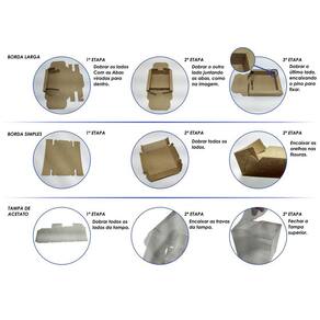 As caixas seguem desmontadas. Dispensa uso de cola. Fácil montagem, apenas com dobras e encaixes.