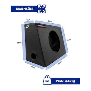 CARACTERÍSTICAS - Ideal para veículos compactos: projetada para um subwoofer de 8" com duto lateral de 2", otimizando espaço sem perder qualidade sonora; - Performance acústica eficiente: configuração dutada que favorece graves mais potentes e definição sonora; - Construção resistente: fabricada em MDF de alta espessura, com revestimento de courvin perfurado preto e manta isolante interna; - Montagem segura e estável: estrutura robusta que reduz vibrações e mantém alinhamento ideal em veículos em movimento.