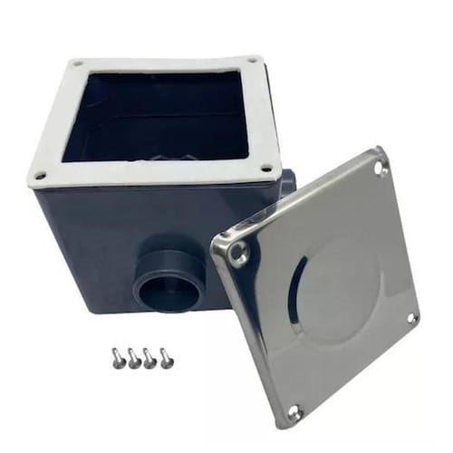 Caixa de Passagem com Prolongador e Tampa em Inox para Iluminação de Piscina 10x10cm - Brustec Apresentamos a solução perfeita para instalar iluminação subaquática em piscinas, cascatas, lagos e riachos: a caixa de passagem da Brustec. Com sua regulagem e tampa em inox 10x10cm e 4 saídas, essa caixa oferece a maior vantagem do mercado. Sua ilha exclusiva eleva o tubo ao máximo, evitando o retorno da água e melhorando o nível da água.