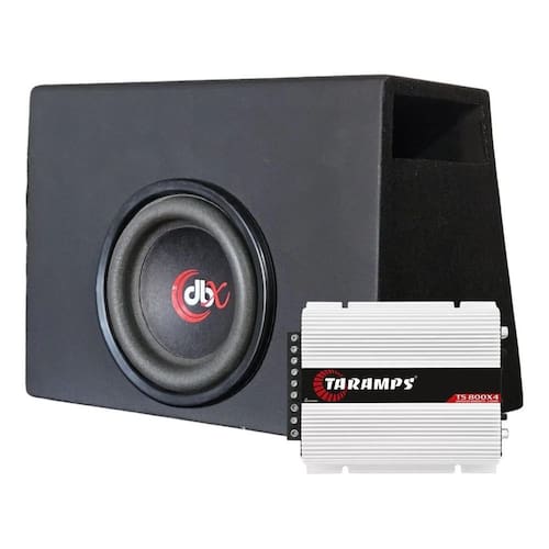 Caixa acústica subwoofer 8 polegadas 500 watts rms - 4 ohms Especificações técnicas: - frequência de ressonância fs ; 46,43 -fator mecânico qms ; 5,60 -fator elétrico qes ; 0,96 -fator total qts ; 0,82 -volume equivalente vas ; 14,12 -sensibilidade spl 1w/1m/free air ; 88,94 -resistencia re ; 3,12 Dimensões: Altura: 31cm Largura: 43cm Base inferior: 28cm Base superior: 19cm Duto régua 4.5 polegadas Peso: 9kg Acompanha módulo taramps amplificador som 800w 4 canais 2 ohms ts800x4 é projetado para atender a sistemas de áudio automotivo com entradas de fio de 4 canais individuais e acionamento automático, eliminando a necessidade de adaptadores. Com potência de 800 watts distribuídos em 4 canais e possibilidade de conexão em bridge, é compatível com diversos modelos de alto-falantes, drivers e super tweeters. Inclui entradas rca, ajuste de ganho e crossover fixo hpf, lpf e full . Especificações técnicas: Linha: linha ts Referência: ts 800x4 Número de canais: 4 12,6 vdc - 2 ohm: 800w rms 4 x 200w rms 12,6 vdc - 4 ohms: 500w rms 4 x 125w rms 12,6 vdc - 8 ohms: 240w rms 4 x 60w rms Relação de sinal / ruído: 96db Resposta de frequência: 10hz a 25khz Impedância de entrada: 10k ohm Sistema de proteção: curto na saída / alimentação baixa Tensão de alimentação mínima: 9 vdc Tensão de alimentação máxima: 16 vdc Consumo em repouso: 1,0a Consumo máximo musical: 12,6 vdc: 38a Consumo máximo em sinal senoidal: 1khz 12,6vdc: 76a Dimensões lxaxp : 184 x 54 x 190mm Peso: 1,40kg Marca: Não Informado Ean: 7900598125884