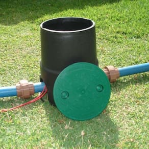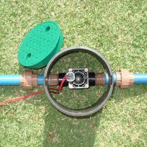 Protege e da condição de manutenção à válvula solenoide que é enterrada com a tubulação e fios do sistema de irrigação.