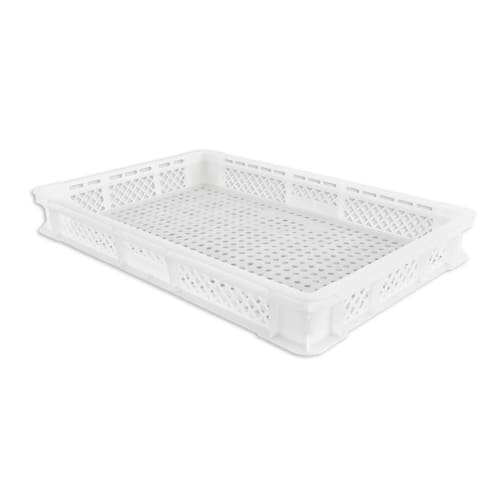 Caixa / bandeja baixa vazada. Material: Termoplástico de alta resistência, PEAD polietileno de alta densidade Cubagem externa: 0,019m³/caixa Dimensional externo: C600 x L400 x A77,5 Dimensional interno: C560 x L360 x A68 Capacidade interna: 13 litros Peso líquido: 1,030kg - variação 5% +/- Empilhamento compatível: Linhas CA10, CA31 e CA50. Sugestões de Aplicação: Transporte e armazenagem de produtos em geral Ean: 7898077293202