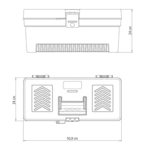 Caixa Plástica para Ferramentas 20 Tramontina com Bandeja RemovívelA Caixa Plástica para Ferramentas 20 Polegadas Tramontina com Bandeja Removível torna o dia a dia mais prático. É projetada para armazenar e transportar ferramentas e outros objetos, como acessórios de pesca. Possui tamanho ideal de 20 polegadas, atestando sua funcionalidade. É produzida em plástico e tem bandeja removível, que facilita o uso. É a melhor opção para levar bom gosto e praticidade para as tarefas cotidianas.Corpo injetado em plástico de alta resistência. Travas plásticas. Pino de articulação da tampa metálico. Capacidade de carga: 12 Kg Possibilita o uso de cadeado. Bandeja plástica interna removível.Uso seguro e adequado:Sempre utilizar óculos de segurança para proteger os olhos. Utilizar luvas para proteger as mãos. Não sobrecarregar as caixas de ferramentas com peso excessivo. Sempre manter as caixas trancadas durante sua movimentação ou transporte. Não apoiar peças sobre as caixas para realizar qualquer trabalho. As caixas são submetidas a testes de aplicação prática para garantir sua resistência durante o uso.Garantia: 90 dias de garantia legal para vícios ou defeitos de fabricação.