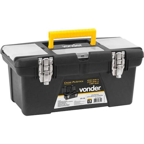 Conteúdo da embalagem 1 Caixa plástica Aplicações e dicas de uso Indicada para organizar, armazenar e transportar ferramentas, peças e acessórios em geral Destaques e diferenciais Possui duas travas, três compartimentos externos (dois removíveis) e bandeja para ferramentas removível DETALHES TÉCNICOS
