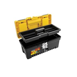 Corpo injetado em plástico de alta resistência. Trava metálica niquelada. Utilizada para o armazenamento e transporte de ferramentas manuais, peças e acessórios. Possibilita o uso de cadeado. Bandeja plástica interna removível. Dois compartimentos na tampa para armazenamento de peças pequenas. Capacidade de carga interna: 8 Kg.