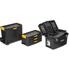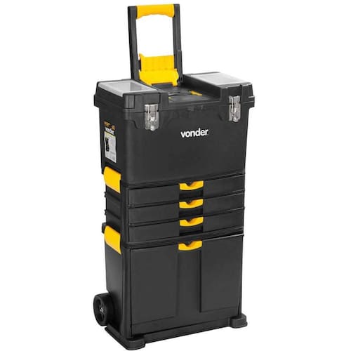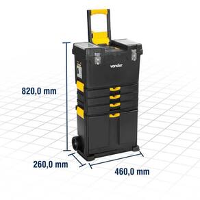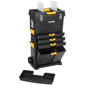 Caixa Plástica para Ferramentas Multiuso Vonder com Rodas 46x26x82cm Preto.