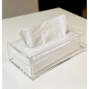 Caixa porta lenços de papel interfolha acrilico cristal top Caixa de acrílico para lenços de papel ou interfolha em acrílico cristal. Medida: 24cm de comprimento x 12cm de largura x 8cm de altura Ideal para quem está em busca de porta lenços decorativo, impactante e de simples troca. A caixa vem com a um peso de acrílico maciço de 5mm que vai descendo a medida do uso do papel, ficando sempre impecável. Indicada para ser usada como porta lenços em lavado e banho, não é apenas um porta lenços em sua casa, mas também uma decoração elegante e brilhante para qualquer lugar onde você o colocar. Medidas: 24 cm largura x 12 cm profundidade x 8 cm altura Material: acrílico cristal 3mm base e 5mm tampa e base com pezinhos de silicone Acrilico puro de primeira qualidade, não amarela. Cuidados: limpar apenas com flanela seca ou lustra móveis. Fotos meramente ilustrativas, não incluídos os lenços. Marca: Exhimia