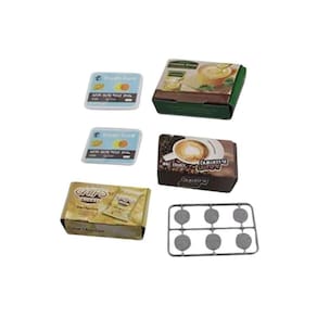 Conteúdo da embalagem: 01 caixa registradora, 02 cartões de crédito, 01 caixa de café, 01 caixa de sopa, 01 caixa de batata chips, 06 moedas