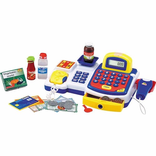 Essa caixa registradora é o presente perfeito para aquela criança que adora brincar de ir ao mercado, como os pais fazem. Acompanha diversos acessórios como notas, moedas e produtos. Esta na hora de fazer as comprinhas. As crianças adoram imitar os adultos nas brincadeiras e, ir ao mercado é uma dessas. Para a diversão ficar completa, essa caixa registradora vai ajudar na hora de comprar e pagar as comidinhas. Ela emite sons e luzes como as de verdade, balança para medir cada produto e gaveta para guardar as notas e moedas. Acompanha diversos acessórios para compor a brincadeira. Ideal para aguçar o aprendizado das crianças quanto ao valor e dinheiro. Marca : DM Toys Referência : DMT3816 Itens inclusos : 1 caixa registradora e acessórios Dimensões da embalagem (LxAxP) cm : 38,5 X 14,5 X 18,00 cm Alimentação : Pilha(s) AA, 2 (Não inclusas) Idade recomendada : Acima de 3 anos Modelo : Hora das Compras Material : Plástico Funções : Emites sons e luzes Atenção : Imagens meramente ilustrativas as cores podem variar.
