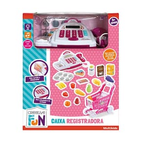 Marca: Multikids Modelo: Caixa Registradora Com Carrinho e Produtos Creative Fun Multikids - BR2035 Cor: Rosa Faixa Etária: + 3 anos Alimentação: 2 pilhas AA não inclusas. Dimensões -LxAxC- 16 x 33.5 x 26.5cm Peso: 0.85Kg Garantia: 3 meses
