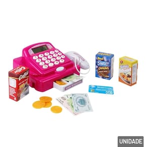 Caixa Registradora com LUZ e SOM Comprinhas A Caixa Registradora Comprinhas Rosa e Branco é perfeita para brincar de mercadinho com muito realismo. Com luzes e sons, torna a experiência ainda mais divertida.\nAcompanha acessórios que simulam compras do dia a dia. Ideal para estimular a imaginação, coordenação e aprendizado das crianças.\nEspecificações:\nMarca : ARK BRASIL\nTipo de material : Plástico\nCores ou Estampa : Branco, Rosa\nDimensões do Produto : 11 X 18,5 X 12 CM\nDimensões da Embalagem : 15 X 24 X 14 CM\nPeso Bruto (Gramas) : 0.400