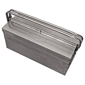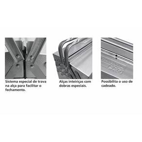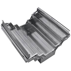 Manter as ferramentas organizadas e facilitar o transporte das peças de um lado para o outro é a finalidade das caixas de inox para ferramentas da Tramontina PRO, que por serem produzidos em aço inox, são ideais para realização de manutenções em indústrias de bebidas, químicas, farmacêuticas e em estaleiros. Orientações Produzida em chapas de aço inoxidável.Cinco gavetas.Alças dobráveis.Marca Tramontina Pro estampada em uma das tampas superiores.As maletas, carros e bancadas são testados em ensaios de carga, para garantir sua resistência durante a utilização na oficina ou indústria.Armazenamento e transporte de ferramentas manuais, peças e acessórios.Ideal para realizar manutenções em indústrias alimentícias, de bebidas, químicas, farmacêuticas e em estaleiros.As ferramentas são produzidas e testadas conforme normas específicas. Observações Use óculos, luvas e outros equipamentos de proteção individual (EPIs) de acordo com a tarefa a ser executada. Mantenha as caixas/maletas trancadas durante sua movimentação ou transporte. Não apoie peças sobre as caixas/maletas para realizar qualquer trabalho. Não sobrecarregue as gavetas das caixas/maletas com peso excessivo. Armazene em local limpo e seco. Características Gerais EAN13 7891114073423 DUN14 17891114073420 NCM 7326.90.90 Peso Líquido 5,1300 kg. Peso Bruto 5,1300 kg. Metragem 0,031174 m³. Dimensões Embalagem (Compr. X Larg. X Alt.) 545x 220x 260 mm. Dimensões Produto (Compr. X Larg. X Alt.) 545x 210x 320 mm. Dimensão Extra A 320,0 mm. Dimensão Extra B 525,0 mm. Dimensão Extra C 210,0 mm. Dimensão Extra D 232,0 mm. Dimensão Extra E 215,0 mm.