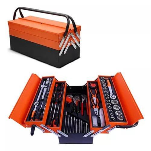 Caixa sanfonada de ferramentas/85pçs multifuncional com maleta de metal Caixa sanfonada de ferramentas com 85 peças multifuncional com maleta de metal - cromo vanádio A caixa de ferramentas de metal é sólida e durável, com 85 ferramentas de cromo vanádio, com 5 gavetas flexíveis para abri-lo. Cada gaveta é completa com ferramentas, o conteúdo de cada gaveta é: Primeira gaveta: soquetes, alavanca de catraca. Segunda gaveta: alicate de combinação, alicate de ponta longa, faca, fita métrica. Terceira gaveta: chaves combinadas, chaves hexagonais, alicates de bomba dágua, alicates de travamento. Quarta gaveta: chaves de fenda Quinta gaveta: soquetes, barra deslizante, barra de extensão, juntas universais, cabo de catraca, adaptador. Dimensões da embalagem: Altura - 25cm Largura - 25,5cm Comprimento - 51,5cm Peso - 12kg Dimensões do produto: Altura - 24cm Largura - 24,5cm Comprimento - 50,5cm Peso - 11,500kg. : 90 dias. Marca: Jntrd
