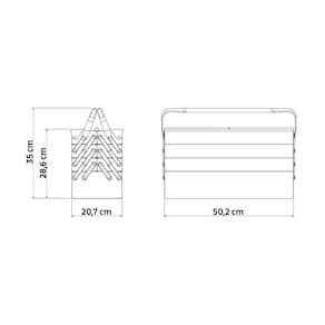 A Caixa Sanfonada para Ferramentas Tramontina com 7 gavetas e Alças Fixas possui pintura eletrostática, garantindo um acabamento excelente e maior resistência à corrosão. A pintura forma uma película protetiva tornando o produto ainda mais durável. Devido a sua construção, ela é muito prática e de fácil movimentação. Além disso, proporciona o armazenamento e transporte de ferramentas manuais, peças e acessórios. Com a Tramontina, suas ferramentas ficarão no lugar certo!