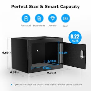 Especificações do produto: Exterior seguro: 16 cm P x 23 cm L x 16,69 cm A Interior seguro: 16 cm P x 21 cm L x 15 cm A Peso seguro: 1,9 kg Capacidade de segurança: 0,22 pés cúbicos Material seguro: aço SPCC Conteúdo da embalagem: 1 cofre bonsaii 2 chaves de emergência. 2 parafusos de expansão SAFE. 1 tapete de chão 1 x manual do usuário (idioma português não garantido). Características do produto seguro Segurança Fechadura de chave de privacidade O cofre SAFEbonsaii é projetado com uma fechadura plana para manter a porta fechada, inclui 2 chaves. SAFETambém oferece proteção de segurança para proteger a privacidade interior. Estrutura de aço sólido. SAFEbonsaii cofre com fechadura para chave é feito de aço SPCC durável para segurança. Segura também possui porta resistente à alavanca e dobradiças ocultas, oferecendo proteção adicional contra entrada forçada. O acabamento em pó antiarranhões e resistente a manchas protege o cofre contra ferrugem e danos, proporcionando verdadeira tranquilidade para seus objetos de valor insubstituíveis. Capacidade requintada e segura SEGURANÇA Exterior: 17 x 23 x 17 cm (P x L x A); Interior: 16,4 x 22,8 x 16,8 cm (P x L x A); A capacidade requintada de 0,22 pés cúbicos cria um lugar seguro para dinheiro, joias, remédios e outros objetos de valor. Seguro compacto e leve, o cofre bonsaii pode ser facilmente escondido em guarda-roupas, prateleiras, gavetas e muito mais, ótimo para proteger sua privacidade fora de vista. Fácil de instalar O cofre de segurança SAFEbonsaii está equipado com dois orifícios de montagem pré-perfurados na parte de trás e na parte inferior, disponíveis para montar este cofre na prateleira, parede ou chão. Protege facilmente seus itens de privacidade fora de vista. Seguro e conveniente de usar. Seguro (1) Insira a chave de emergência na fechadura (2) Gire no sentido horário para abrir o cofre (3) Gire a chave no sentido contrário para travar o cofre. Serviço de apoio ao cliente SAFEProfessional Certificado SAFEFCC. SAFEbonsaii cofre para casa oferece atendimento ao cliente profissional em todos os momentos. - Segurança Fechadura de chave de privacidade: o cadeado de cofre bonsaii é projetado com uma trava plana para manter os espectadores indesejados longe e evitar que a porta se abra; Inclui 2 chaves; Nota: Mantenha sempre as chaves de emergência fora deste cofre doméstico - Estrutura de aço durável e segura: o cofre bonsaii com chaves é feito de aço SPCC durável; também possui porta resistente à alavanca e dobradiças ocultas, adicionando proteção contra entrada forçada e melhorando a segurança e confiabilidade - SEGURO Design compacto: Exterior: 17 x 23 x 17 cm (P x L x A); Interior: 16,4 x 22,8 x 16,8 cm (P x L x A); um cofre pode ser facilmente escondido em guarda-roupas, prateleiras e gavetas; Nota: Preste atenção total ao tamanho do produto antes de comprar - SEGURANÇA Capacidade requintada: A capacidade inteligente de 0,22 pés cúbicos cria um local seguro para dinheiro, remédios e outros objetos de valor; Projetado para armazenamento em casa ou no escritório; Observação: para referência, este cofre não é adequado para armazenar papel ou documentos de tamanho A4 - SEGURANÇA Fácil de Instalar: o cofre de segurança bonsaii está equipado com dois orifícios de montagem pré-perfurados na parte traseira e inferior, disponíveis para montar este cofre na prateleira, parede ou chão; Protege facilmente seus itens de privacidade fora de vista - O que vem na caixa: 1 x bonsaii Cofre, 2 x chaves de emergência, 2 x parafusos de expansão, 1 x tapete de chão, 1 x manual do usuário; Suporte profissional: um cofre com trava de chave é apoiado por um serviço de atendimento ao cliente profissional em todos os momentos