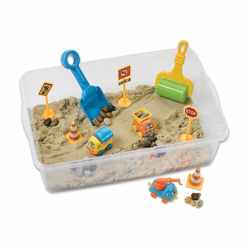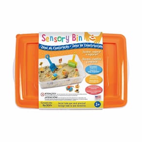 As crianças pequenas embarcarão em uma aventura de construção e aproveitarão horas de brincadeiras imaginativas enquanto pegam, separam e exploram os tesouros dentro do Kit Sensory Bin Construction Zone!