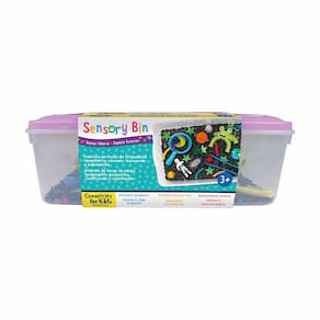 As crianças pequenas embarcarão em uma aventura de construção e aproveitarão horas de brincadeiras imaginativas enquanto pegam, separam e exploram os tesouros dentro do Kit Sensory Bin Outer Space!