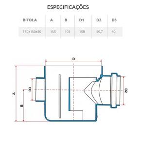 Caixa Sifonada 150mm c/ Grelha Quadrada saída 50mm