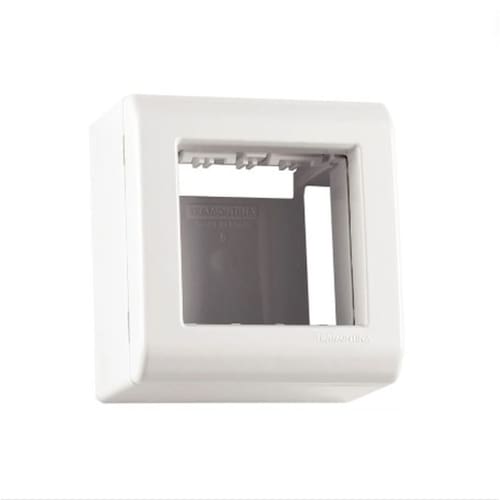 Ela é fabricada em termoplástico na cor branca e é composta por caixa e tampa com encaixe de pressão. Possui ainda sistema modular e janelas para inserir canaletas de diferentes dimensões.