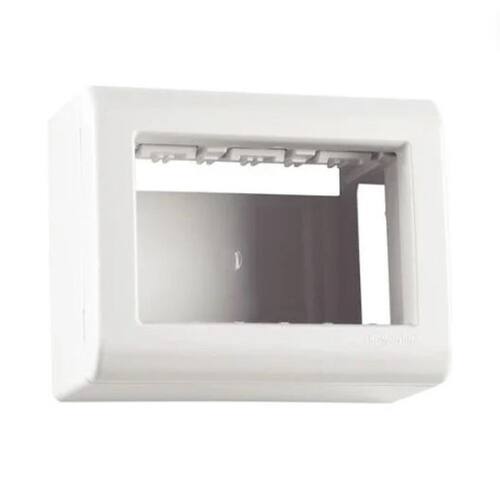 Ela é fabricada em termoplástico na cor branca e é composta por caixa e tampa com encaixe de pressão.