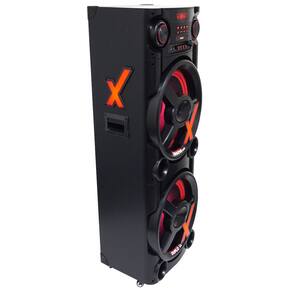 Medidas da caixa de som: 124 x 46 x 38 cm (altura x largura x profundidade)