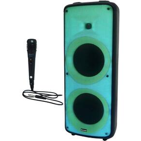 Medidas da caixa de som: 85 x 32 x 30 cm (altura x largura x profundidade)