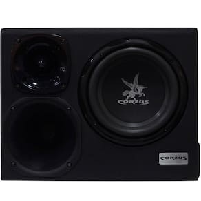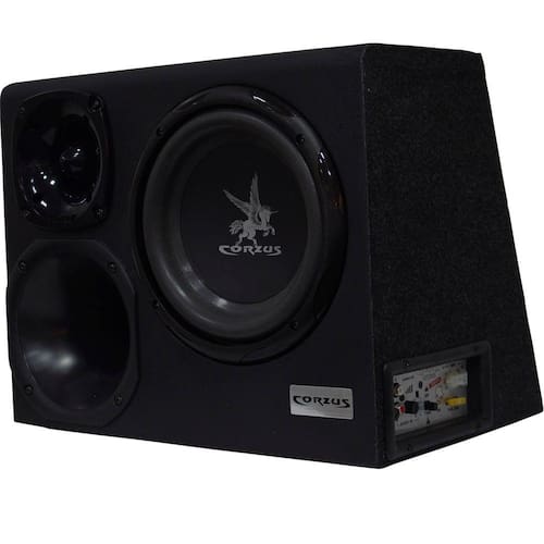 A Corzus CXT 300-8 é um caixa amplificada de dupla função com potencia total de 300 WRMS e um amplificador Digital. Com altíssima eficiência e baixa emissão de ruído, possui extrema qualidade de áudio e resposta de frequência (senoidal) de 20Hz a 20KHz, filtro subsônico, diversas proteções eletrônicas, chave seletora para modo Sub ou modo Trio e entrada com opção de fio ou RCA.