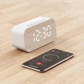 Caixa De Som Bluetooth Radio Relogio Despertador Digital Espelhado Fm Usb Tf Card Branco Descrição:Rádio Relógio Digital e Alarme Despertador com caixinha de Som Bluetooth integradoEste lindo acessório para completar seu quarto pode ser utilizado também como caixa de som para Notebook, PC, Celular, Tablet. Ele conta com Design fino e uma linda tela espelhada.Bluetooth 5.0 (distância, até 10 metros)Função AlarmeBateria de Litium (Salva a hora e programação, mesmo depois de desligado ou descarregado)Duração da Bateria: 4 horasPode ficar sempre ligado na tomadaEntrada para Cartão Micro SDVisor DigitalBateria: 1.6200mahPotência: 3W RMSDimensões: 4,5 x 4,5 x 13cmItens Inclusos1 Rádio Relógio Digital 1 Cabo USBCaracterísticas- Display digital LED;- Frontal elegante espelhado;- Versão do bluetooth: V5.0;- Alcance do bluetooth: +/- 10 Metros;- Função relógio;- Formato da hora: 24H;- Despertador: 2 alarmes;- Botões: Liga/desliga, Play/Pause, Anterior/Próximo, Opções (Set), Volume (+/-);- Modo de carregamento via USB;- Bateria: 1200mAh;- Alto Falante: 5W;- Tempo de uso: até 4 horas;- Tempo de carga: média de 5 horas;Fotos meramente ilustrativas