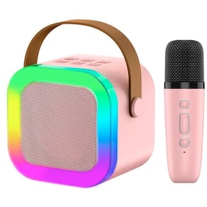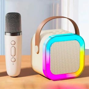 Caixa de Som Karaokê Caixinha Infantil Bluetooth Microfone Sem Fio LED RGB
