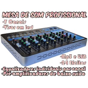 -7 Canais de entrada (5 microfones Line + 1 TRS + 1 RCA)